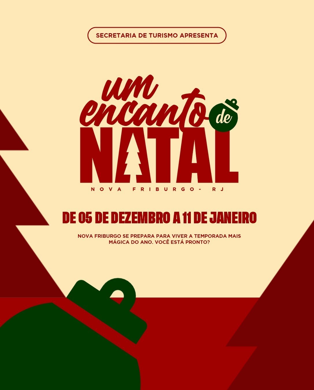 A Prefeitura de Nova Friburgo, por meio da Secretaria de Turismo, apresentou nesta quinta-feira (04/12) todos os detalhes do evento “Um Encanto de Natal”. O projeto que reúne ornamentação natalina e programação, acontece de 05 de dezembro a 11 de janeiro, e promete consolidar a cidade como o maior destino natalino do interior do Estado do Rio de Janeiro e atrair milhares de visitantes.