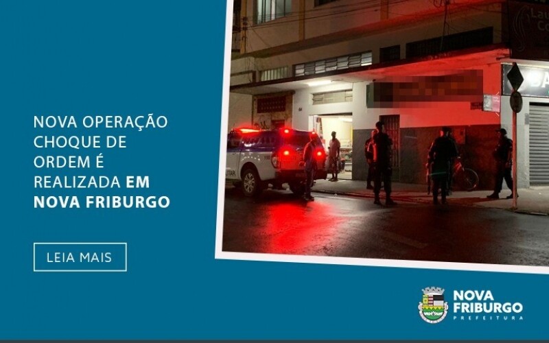 NOVA OPERAÇÃO CHOQUE DE ORDEM É REALIZADA EM NOVA FRIBURGO A Prefeitura de Nova Friburgo, por meio da Secretaria Municipal de Políticas ...