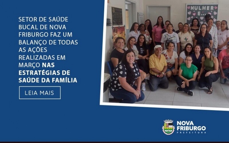 SETOR DE SAÚDE BUCAL DE NOVA FRIBURGO FAZ UM BALANÇO DE TODAS AS AÇÕES REALIZADAS EM MARÇO NAS ESTRATÉGIAS DE SAÚDE DA FAMÍLIA A Secretaria Munici ...