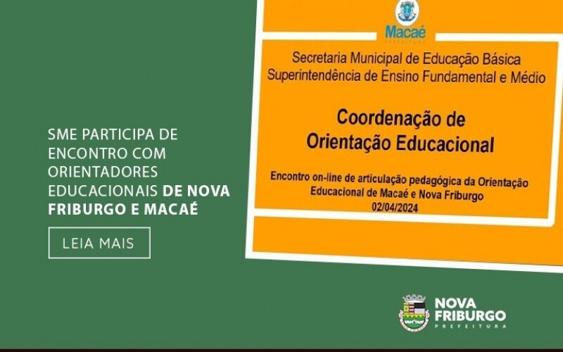 SME PARTICIPA DE ENCONTRO COM ORIENTADORES EDUCACIONAIS DE NOVA FRIBURGO E MACAÉ A Secretaria Municipal de Educação (SME) da Prefeitura ...