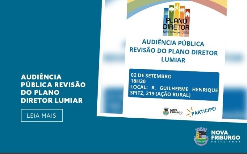 A Prefeitura de Nova Friburgo convida toda a população a participar da Audiência Pública de Revisão do Plano Diretor em Lumiar, que acontece no di ...