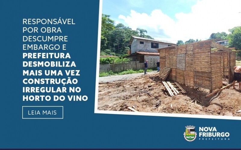 Menos de uma semana após desmobilizar uma construção irregular em estágio inicial na localidade Horto do Vino, no distrito de Conselheiro Paulino, ...