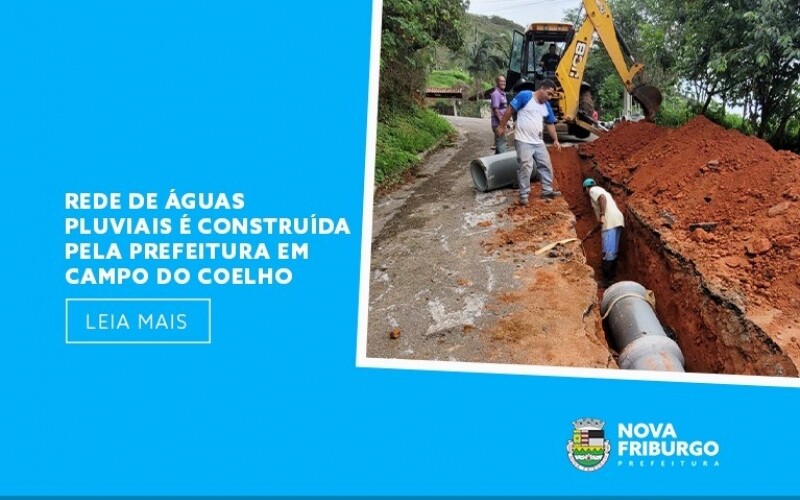 A Prefeitura de Nova Friburgo, por meio da Subprefeitura de Campo do Coelho, está construindo uma rede de águas pluviais na Rua Adolfo Júlio Bom, ...