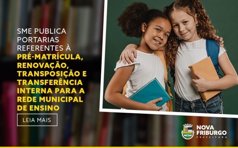 SME PUBLICA PORTARIAS REFERENTES À PRÉ-MATRÍCULA, RENOVAÇÃO, TRANSPOSIÇÃO E TRANSFERÊNCIA INTERNA PARA A REDE MUNICIPAL DE ENSINO A Secretaria Mun ...