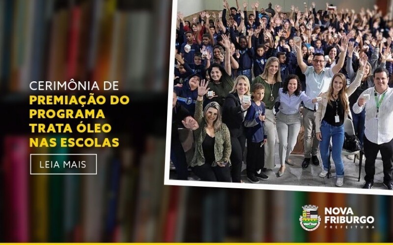 Na manhã desta segunda-feira, 11, aconteceu, no Auditório do Complexo Educacional Nossa Senhora das Graças, a cerimônia de premiação do Programa Trata Óleo nas Escolas. Estiveram presentes no evento o prefeito, Johnny Maycon, a secretária de Meio Ambiente e Desenvolvimento Urbano Sustentável, Andrea Duque Estrada, a secretária de Educação, Caroline Moura Klein, a diretora da concessionária Águas de Nova Friburgo, Danielle Moreira e outros representantes da Águas de Nova Friburgo