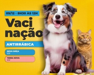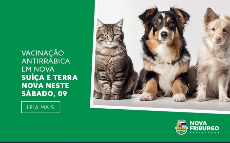 Neste sábado, 09, a Subsecretaria de Vigilância em Saúde da Secretaria Municipal de Saúde realizará a vacinação antirrábica nas Estratégias de Saúde da Família de Nova Suíça e Terra Nova, das 8:30 até às 12 horas.