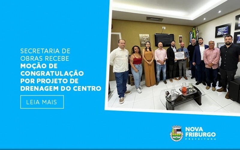A homenagem destaca a idealização do projeto de drenagem no centro da cidade, de autoria do Poder Executivo Municipal, por intermédio da Secretaria Municipal de Obras, e realizada após investimento do Governo do Estado do Rio de Janeiro. Já concluída e de grande relevância para toda a população friburguense que há décadas aguardava por sua concretização, esse foi um grande avanço da atual gestão municipal em prol do bem-estar dos friburguenses.
