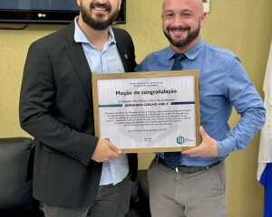O secretário municipal de Obras, Bernardo Verly, representando toda a equipe da pasta, recebeu na noite de quinta-feira, 7 de dezembro, uma Moção de Congratulação oferecida pelo vereador Max Bill, presidente da Câmara Municipal.