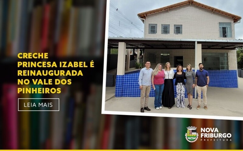 A Prefeitura de Nova Friburgo reinaugurou, na manhã da última terça-feira, 28, o Centro Municipal de Educação Infantil Princesa Izabel, no Vale dos Pinheiros. O espaço passou por uma revitalização visando proporcionar um ambiente de aprendizado mais adequado e confortável para os alunos. A creche atende 75 crianças e vai aumentar sua capacidade para o ano letivo de 2024, com turmas do Maternal I até o Pré II.