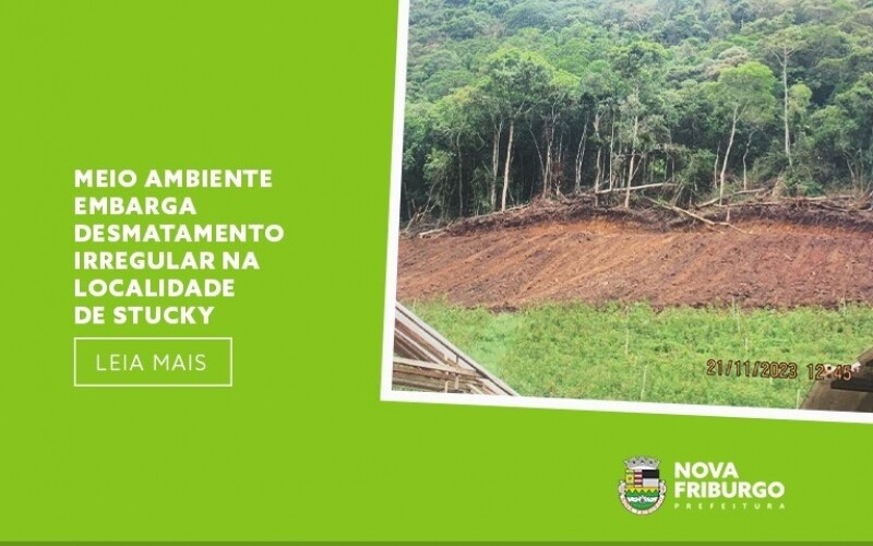 A Prefeitura Municipal de Nova Friburgo, através da Secretaria Municipal do Meio Ambiente e Desenvolvimento Urbano Sustentável e da Subsecretaria de Fiscalização de Edificações e do Meio Ambiente, embargou e notificou no dia 21, a ocorrência irregular de movimentação de terra e supressão de vegetação na Estrada Muri-Lumiar, na altura de Stucky-Colonial 61. No local foram identificadas as infrações ambientais, diante do corte de vegetação e movimentação de terra realizadas sem a prévia licença ambiental da autoridade municipal.