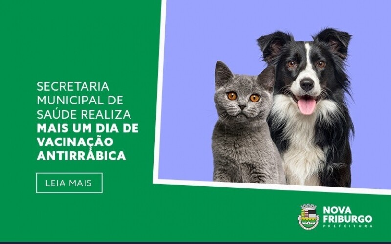 Dando continuidade a vacinação antirrábica em Nova Friburgo, a Secretaria Municipal de Saúde, por meio da Subsecretaria de Vigilância em Saúde, realiza mais um dia de campanha no próximo sábado, 28, das 9h às 16h.