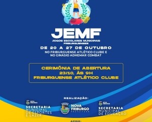 Após cinco anos, os Jogos Escolares Municipais Friburguenses estão de volta. A solenidade de abertura do JEMF acontece na próxima segunda-feira, dia 23, às 9h, no Friburguense Atlético Clube. Os jogos reúnem diversas modalidades esportivas, com a participação de 16 escolas municipais. Serão cinco dias de atividades nos ginásios Helena Decacche (Friburguense) e Adhemar Combat, ambos em Olaria. A realização é da Prefeitura de Nova Friburgo, por meio das secretarias de Esportes e Lazer e de Educação, com o apoio da Estácio Friburgo.