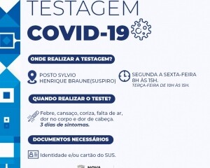 A testagem ocorre no laboratório do Posto do Suspiro, às segundas, quartas, quintas e sextas, os testes são realizados das 8 às 15 horas. Já as terças, das 10 às 15, devido a rotina laboratorial deste dia. O Hospital Municipal Raul Sertã só realiza o teste em casos graves, por isso, só vá ao hospital se estiver com sintomas fortes, evitando a circulação no ambiente hospitalar.