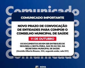 NOVO PRAZO DE CONVOCAÇÃO PARA HABILITAÇÃO DE ENTIDADES PARA COMPOR O CONSELHO MUNICIPAL DE SAÚDE