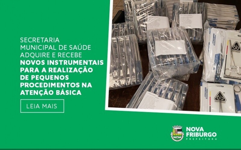 A Secretaria Municipal de Saúde recebeu nesta semana novos instrumentais cirúrgicos para a realização de pequenos procedimentos na Atenção Básica de Nova Friburgo, que são as Unidades Básicas de Saúde (UBS).