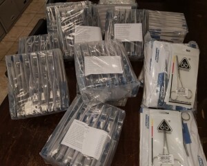 Chegaram cabos de bisturi, pinças, tesoura e porta agulha. Ao todo, 18 itens foram adquiridos, o que permite montar quatro conjuntos para cada posto que serão distribuídos entre as UBS do Suspiro, Olaria, Conselheiro Paulino, Cordoeira e São Geraldo.