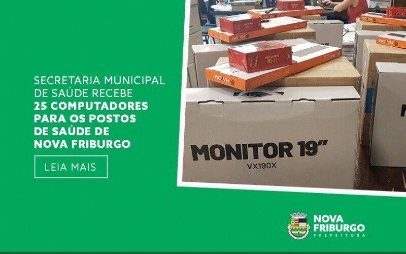 A Subsecretaria de Atenção Básica da Secretaria Municipal de Saúde recebeu nesta quarta-feira, 4, 25 computadores que serão distribuídos para os postos de saúde de Nova Friburgo. Todas as Unidades Básicas de Saúde receberão um aparelho e os outros 20 equipamentos serão destinados às Estratégias de Saúde da Família preenchendo as demandas desses locais.
