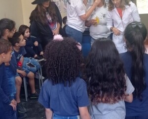 Foram realizadas dinâmicas sobre higiene corporal e bucal, com ações de conscientização e orientação com as crianças, além de avaliação da caderneta vacinal, conferindo se as vacinas dos menores estão em dia.