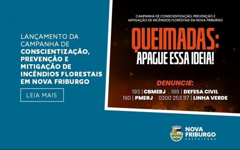 O Corpo de Bombeiros Militar do Rio de Janeiro e a Prefeitura de Nova Friburgo, por meio das secretarias municipais de Meio Ambiente e Desenvolvimento Urbano Sustentável e de Defesa Civil, em parceria com o Tiro de Guerra 01-010 e com o apoio das concessionárias Rota 116 e Águas de Nova Friburgo, lançam no próximo dia 25 de setembro, a partir das 9h, a Campanha de Conscientização, Prevenção e Mitigação de Incêndios Florestais em Nova Friburgo.