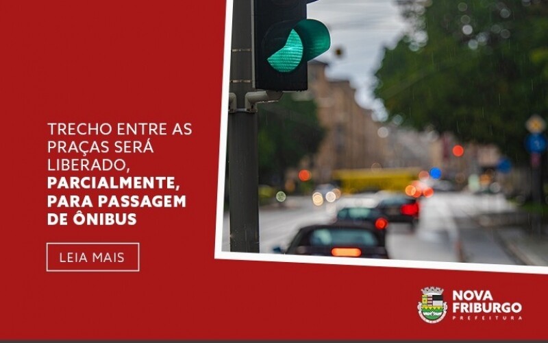 A Prefeitura de Nova Friburgo, por meio da Secretaria Municipal de Ordem e Mobilidade Urbana (Smomu), informa que a partir das 23h59 desta sexta-feira, 15, o trecho entre as praças Getúlio Vargas e Dermeval Barbosa Moreira, no Centro, estará parcialmente liberado para os ônibus que circulam na direção sul (da Praça Getúlio Vargas para a Avenida Alberto Braune), passando em frente ao Instituto de Educação de Nova Friburgo (Ienf).