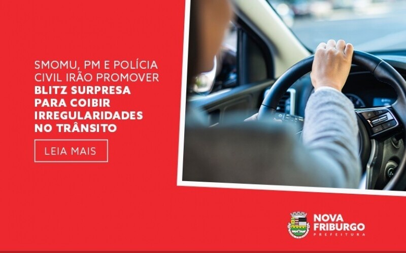 Em uma ação conjunta, a Prefeitura de Nova Friburgo, por meio da Secretaria Municipal de Ordem e Mobilidade Urbana (Smomu), o 11º Batalhão de Polícia Militar (BPM) e a 151ª DP promoverão, a partir da próxima segunda-feira, 28 de agosto, blitz em bairros e distritos da cidade, em horários aleatórios, a fim de flagrar veículos e condutores em situação irregular, em especial motocicletas.