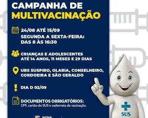 A vacinação estará disponível a partir desta sexta-feira, 24, até o dia 15 de setembro. De segunda a sexta-feira, nas Unidades Básicas de Saúde do Suspiro, Olaria, Conselheiro Paulino, Cordoeira e São Geraldo, das 8h às 16h30, as doses serão aplicadas nos pequenos.