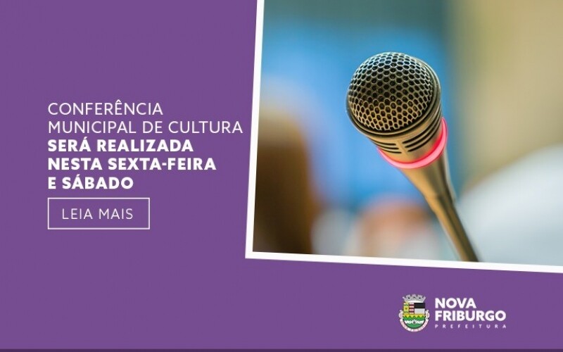 A V Conferência Municipal de Cultura de Nova Friburgo será realizada nesta sexta-feira, 25, no horário das 18h30 às 22h, e no sábado, 26, das 9h às 16h, na Oficina Escola de Artes, situada na Praça Getúlio Vargas, 89, antigo fórum, no Centro. A realização é da Prefeitura de Nova Friburgo e sua Secretaria de Cultura, com apoio da Rota 116, Frionline, Habitare, Deck, Casa Friburgo e Frigodário.
