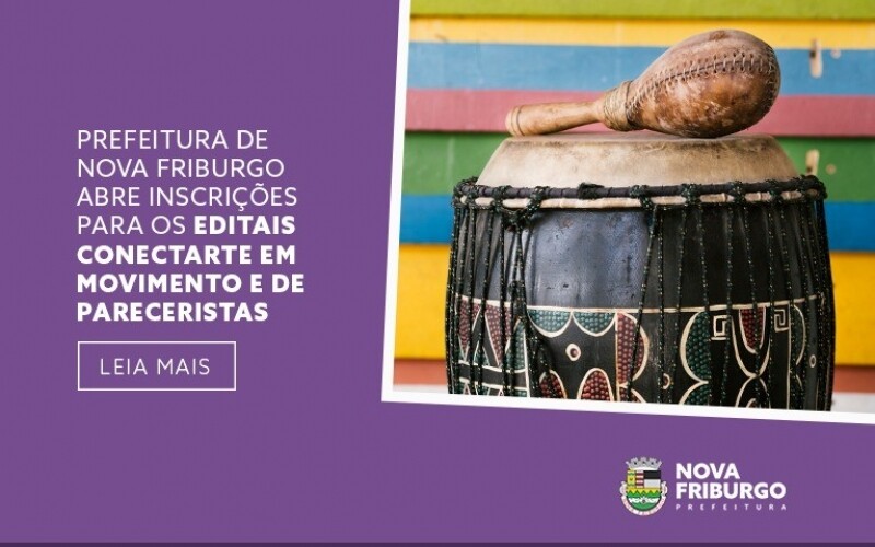 CONECTARTE EM MOVIMENTO – Foi elaborado para garantir que a arte chegasse às casas dos friburguenses durante o período de pandemia. Com o sucesso do projeto a Secretaria de Cultura chega à terceira edição, dessa vez com categorias online e presencial. Essa edição contemplará 56 propostas, sendo 32 propostas culturais a serem realizadas presencialmente no município de Nova Friburgo e 24 propostas culturais em formato online.