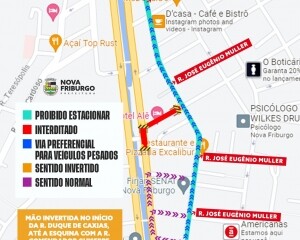 Enquanto a avenida estiver interrompida, o estacionamento será proibido no trecho invertido da Rua Duque de Caxias, além dos dois lados da via e por toda extensão das ruas Giuseppe Mastrangelo, José Eugênio Muller e Antônio Soares Macedo, assim como a Rua Francisco Miele (atrás da Estação Livre). A proibição entra em vigor a partir das 22h, da próxima sexta-feira, dia 14.