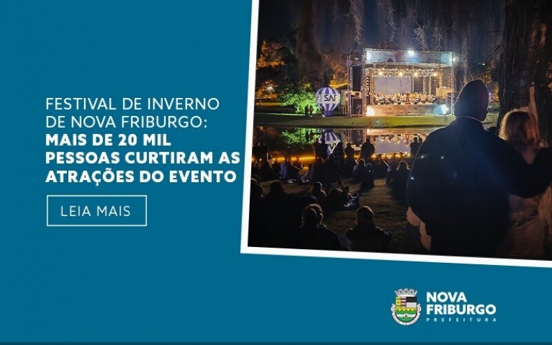 Um deleite de arte e cultura, num dos cenários mais deslumbrantes do Brasil. O público marcou presença durante os dez dias da 20ª edição do Festival de Inverno de Nova Friburgo. O evento aconteceu de 30 de junho a 9 de julho, no teatro e nos jardins do Nova Friburgo Country Clube oferecendo uma programação gratuita com muita dança, música, teatro, música erudita e circo. Segundo balanço da Secretaria Municipal de Cultura, mais de 20 mil pessoas desfrutaram das atrações culturais.