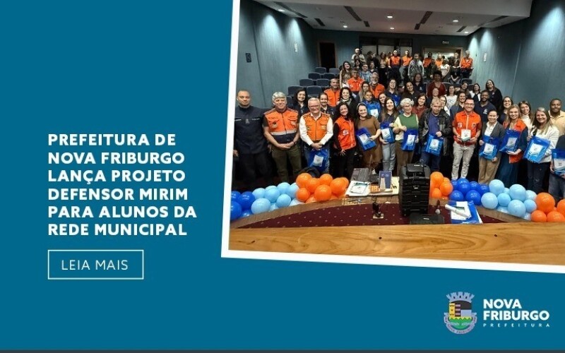 A Prefeitura de Nova Friburgo, por meio de uma parceria entre a Secretaria de Educação e a Secretaria de Proteção e Defesa Civil, com o apoio da Concessionária Águas de Nova Friburgo, deu início ao projeto Defesa Civil nas Escolas - Defensor Mirim, uma iniciativa que visa capacitar alunos da rede municipal em conhecimentos sobre prevenção e proteção civil. O lançamento oficial ocorreu na manhã desta segunda-feira, 15, no auditório da Secretaria de Educação.