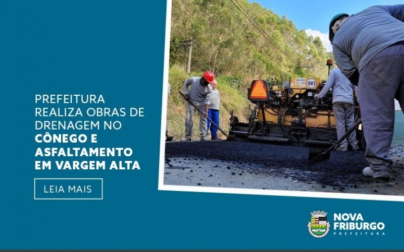 A Prefeitura de Nova Friburgo, através da Secretaria de Obras e da Subprefeitura de Lumiar e São Pedro da Serra, iniciou nesta terça-feira, 13, o asfaltamento na região de Vargem Alta, que fica no 7º distrito. Outra importante obra que a Prefeitura de Nova Friburgo está realizando é a drenagem da Rua Wenceslau Braz, no Cônego.