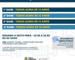 A Secretaria Municipal de Saúde está oferecendo a vacinação contra a covid-19 para toda a população de Nova Friburgo. O imunizante da bivalente, que é o mais atualizado contra as cepas do vírus, está disponível para todos com mais de 18 anos, conforme orienta os órgãos federais e estaduais.