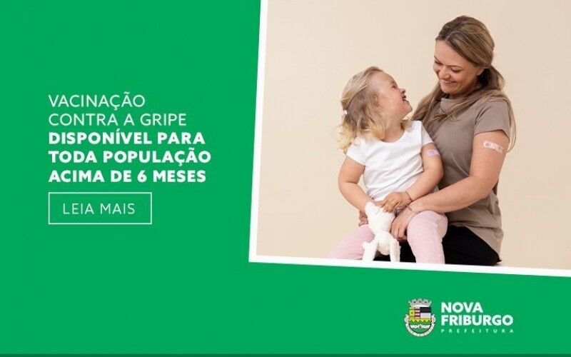 A Prefeitura de Nova Friburgo continua com a vacinação contra a gripe durante a próxima semana. Com o objetivo de imunizar toda a população, a campanha está disponível para todos acima dos 6 meses de vida.