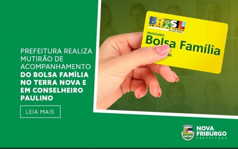 A Prefeitura, por meio da Secretaria Municipal de Saúde e da Subsecretaria de Vigilância em Saúde, realizará em Nova Friburgo dois mutirões de acompanhamento dos beneficiários do Bolsa Família, programa de apoio às famílias de baixa renda do Governo Federal, em relação às questões de saúde.