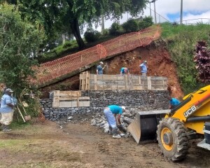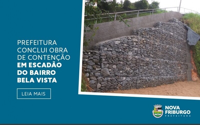 A Prefeitura de Nova Friburgo, através da Secretaria de Obras, finalizou a obra com gabião para contenção do muro do escadão que liga as ruas São Paulo e Ceará, no bairro Bela Vista. Com a conclusão deste serviço, realizado pelas equipes de serralheria e de pequenas obras, os moradores poderão voltar a passar pelo local com segurança.