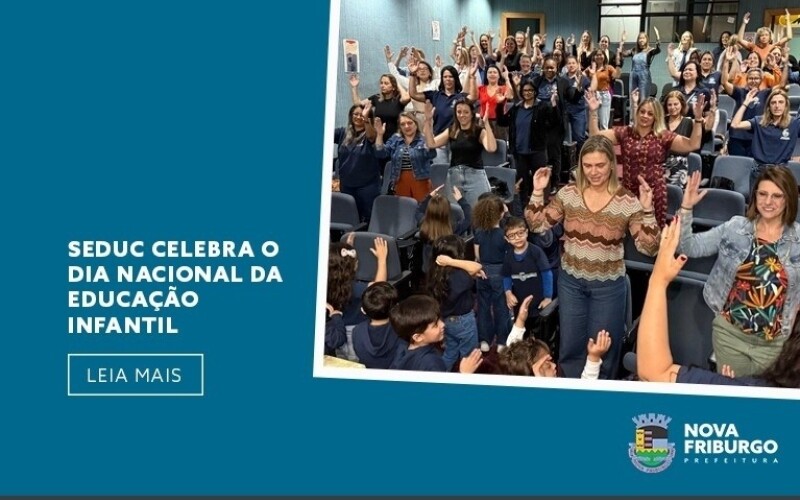 A Prefeitura de Nova Friburgo, por meio da Secretaria Municipal de Educação (SEDUC) e da Gerência Pedagógica de Educação Infantil, realizou na manhã desta segunda-feira, 25, um evento em homenagem e comemoração ao Dia Nacional da Educação Infantil. A celebração aconteceu no auditório da SEDUC e contou com a participação de alunos do pré II do JIM Elisa Teixeira de Uzêda.
