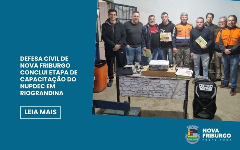A Defesa Civil de Nova Friburgo realizou, nos dias 18 e 19, a primeira etapa do treinamento para voluntários e novos integrantes do NUPDEC – Núcleo Comunitário de Proteção e Defesa Civil – no distrito de Riograndina. A capacitação tem como objetivo preparar a comunidade para atuar de forma preventiva e eficaz em situações de risco e emergência.