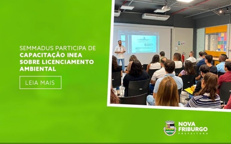 A Prefeitura de Nova Friburgo, através da Secretaria de Meio Ambiente e Desenvolvimento Urbano Sustentável, participou na última quarta-feira, 5, da Capacitação INEA sobre licenciamento ambiental. O evento ocorreu no Sebrae Nova Friburgo e contou com a presença de gestores e servidores das Secretarias de Meio Ambiente dos municípios abrangidos pela Superintendência Regional Rio dos Rios.
