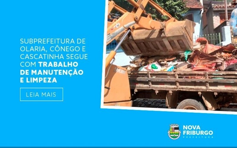 Neste mês de março os trabalhos não param e as equipes da Subprefeitura de Olaria, Cônego e Cascatinha - setor da Prefeitura de Nova Friburgo que cuida da área mais populosa do município - estão sempre em ação. O subprefeito Matiel Gonçalves e os funcionários se movimentam para manutenção de redes de águas pluviais e da pavimentação das vias, além da limpeza diária.