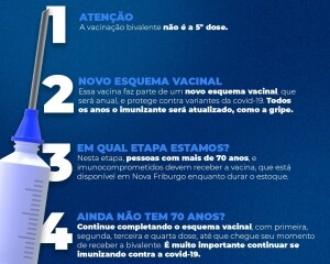 * Nesta etapa, pessoas com mais de 70 anos e imunocomprometidos devem receber a vacina, que está disponível em Nova Friburgo enquanto durar o estoque.