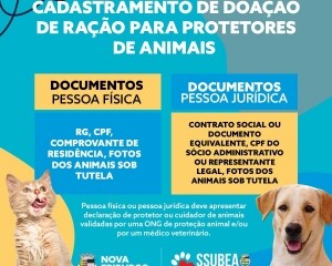 SSUBEA ABRE CADASTRAMENTO DE DOAÇÃO DE RAÇÃO PARA PROTETORES DE ANIMAIS