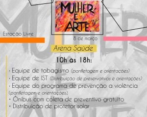 Na próxima quarta-feira, 8, em celebração ao Dia da Mulher, a Prefeitura de Nova Friburgo, por meio da Secretaria Municipal de Cultura, realizará o evento ‘’Mulher é Arte’’, na Estação Livre. E a Secretaria Municipal de Saúde terá um espaço para assistência chamado ‘’Arena Saúde".