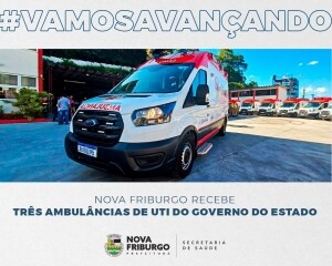 A Prefeitura de Nova Friburgo recebeu nesta quarta-feira, 1º, três ambulâncias do Governo do Estado do Rio de Janeiro. Os veículos são novos, completos, classificados como avançados, com suporte para Unidade de Terapia Intensiva (UTI).