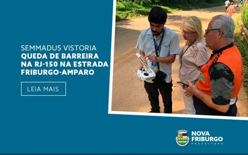 A Secretaria Municipal de Meio Ambiente e Desenvolvimento Urbano Sustentável (Semmadus) realizou na última quinta-feira, 23, uma vistoria na estrada que liga o centro de Nova Friburgo ao distrito de Amparo, a RJ-150, em apoio à Secretaria Municipal de Defesa Civil.