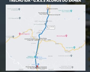 DIVULGADO TRAJETO QUE DEVERÁ SER FEITO PELAS AGREMIAÇÕES NO DESLOCAMENTO DE ALEGORIAS