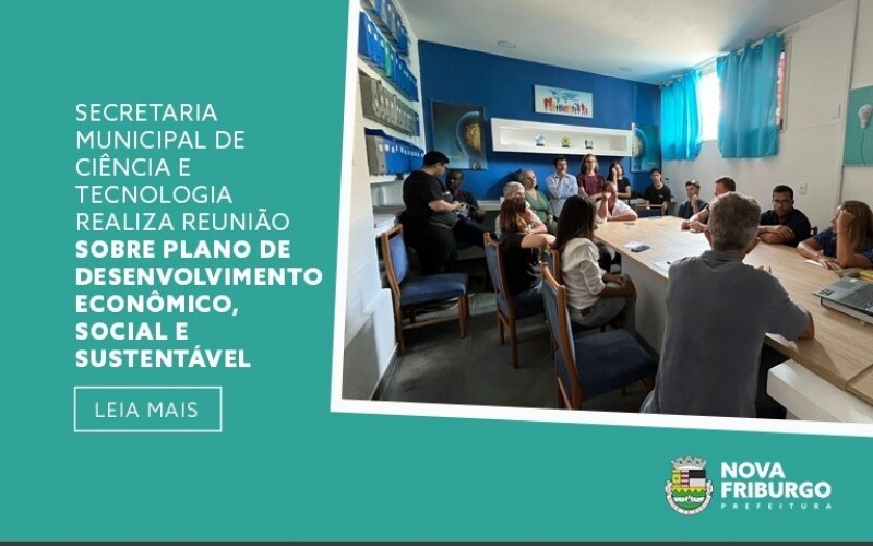 A Prefeitura de Nova Friburgo, por meio da Secretaria Municipal de Tecnologia, Inovação, Educação Profissionalizante e Superior, juntamente com a Universidade Estadual do Rio de Janeiro (UERJ), Universidade Federal Fluminense (UFF) e Serviço Brasileiro de Apoio às Micro e Pequenas Empresas (SEBRAE), realizou nesta segunda-feira, 13, na sala de Desenvolvimento Econômico, uma reunião sobre o Plano de Desenvolvimento Econômico, Social e Sustentável de Nova Friburgo e região.