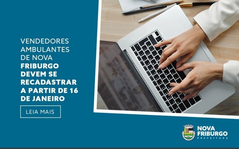A Prefeitura de Nova Friburgo, através da Secretaria Municipal de Ordem e Mobilidade Urbana (Smomu) e sua Subsecretaria de Ordem Urbana e Posturas, está informando o início do processo de recadastramento de ambulantes e comércio informal a partir do dia 16 de janeiro de 2023.