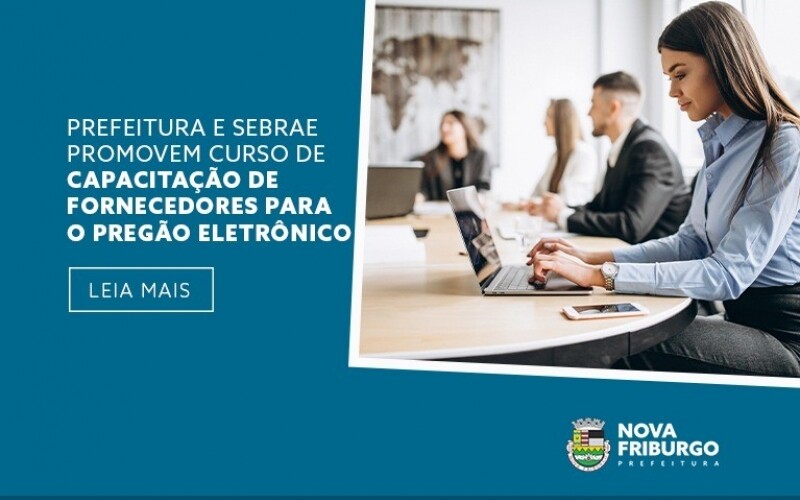 A Prefeitura de Nova Friburgo, através da Secretaria de Infraestrutura e Logística, e o Sebrae promovem um curso de capacitação dos fornecedores interessados em participar de licitações gratuitas por meio do pregão eletrônico. O curso será ministrado por André Netto, consultor do Sebrae, nos dias 15 de 16, quinta e sexta-feira da próxima semana, às 18h, na sede do Sebrae, que fica no Espaço Arp, Avenida Conselheiro Julius Arp, 80, no Paissandu.
