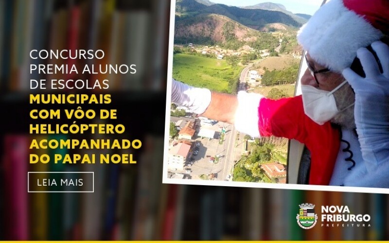 A magia do Natal tomou conta das Escolas Municipais. A Prefeitura de Nova Friburgo, por meio das Secretarias Municipais de Educação e Turismo, realizou um concurso de atividades pedagógicas com os alunos e professores. A premiação é um voo de helicóptero na cidade, na companhia do Papai Noel. O prefeito Johnny Maycon também participará do voo.